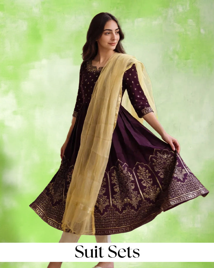 The kurta sets are available in various styles, from the stark simplicity of a straight cut to the more flowy effect of an A-line cut, to suit every taste. Manufactured from quality fabrics such as cotton, silk, chanderi, and other fabrics, these sets will get you just right for any occasion-from festive to family gatherings or even work. Since the entire craftsmanship is done with much care, from embroidery to sequins, even to mirror work, it has given it a very festive feel, hence the sets are apt for any occasion. Pair your kurta set with bold jewelry and traditional juttis to complete your attire in style.