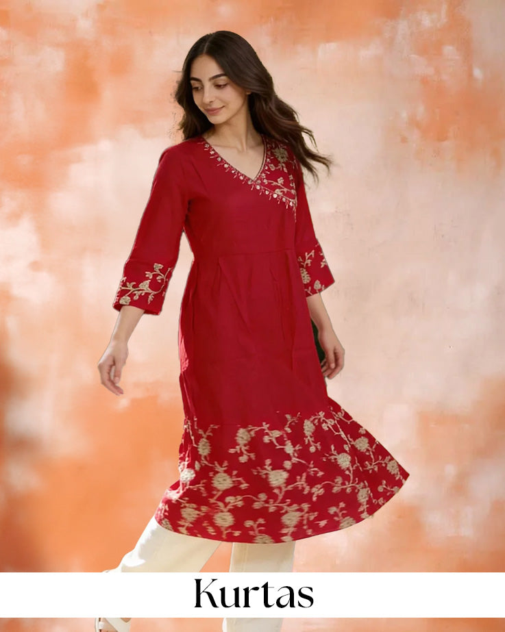 Rangita's kurta collection stands as a perfect reflection of traditions interwoven with contemporary style, offering a wide range of designs for every taste. The kurtas are made from premium cotton, silk, chanderi fabrics and more, providing comfort while keeping them strong and long-lasting. All the garments serve as a reflection of superior craftsmanship. From casual wear for an outing to formal wear for special occasions, we have something for all tastes. Wear your kurta with leggings, palazzos, or jeans for that elegant, modern look. Rangita's kurtas will comfortably see you through from day to night, hence becoming a handy wear in your ethnic wear wardrobe.